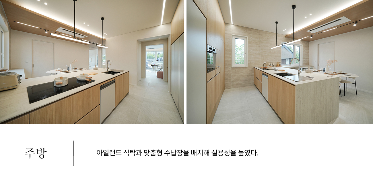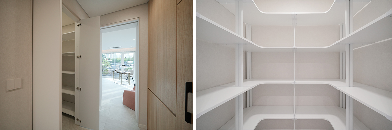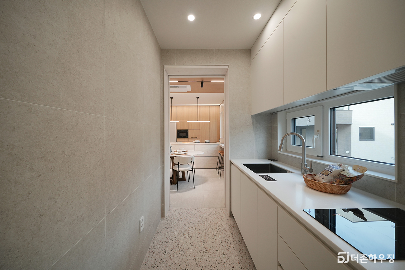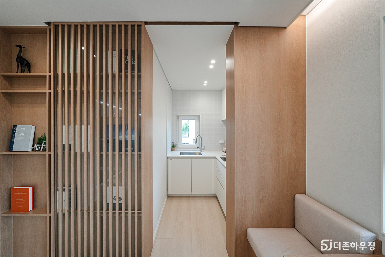 소거실과 가까워 간단한 다과나 음료 준비가 편리하며, 효율적인 동선과 절제된 수납 구조로 실용성을 높였다.