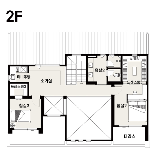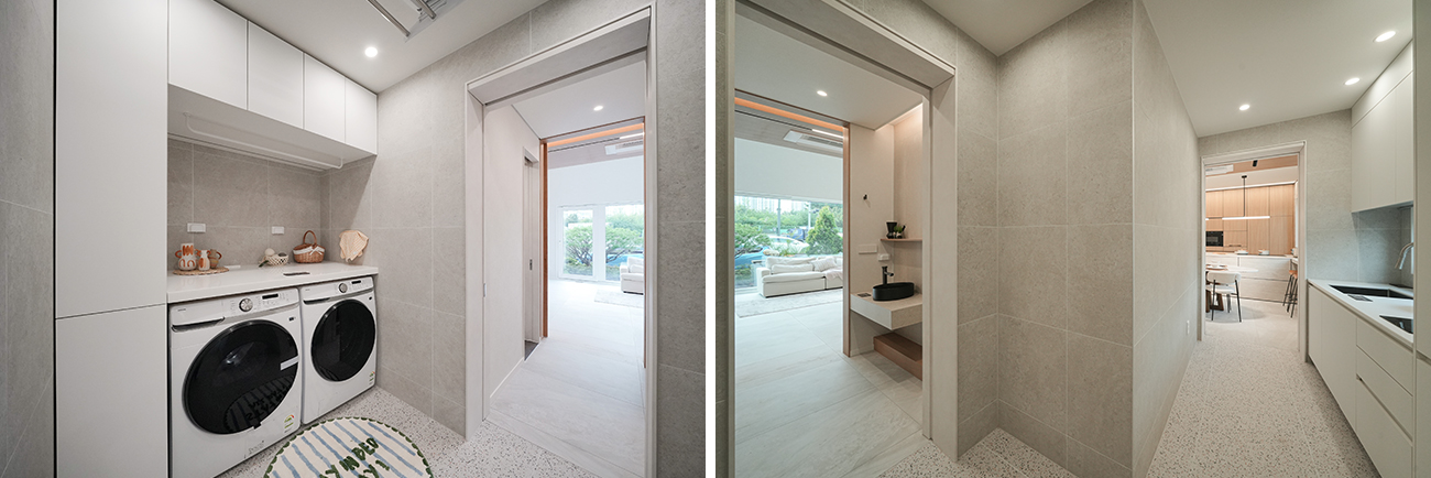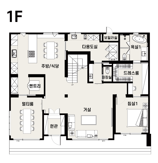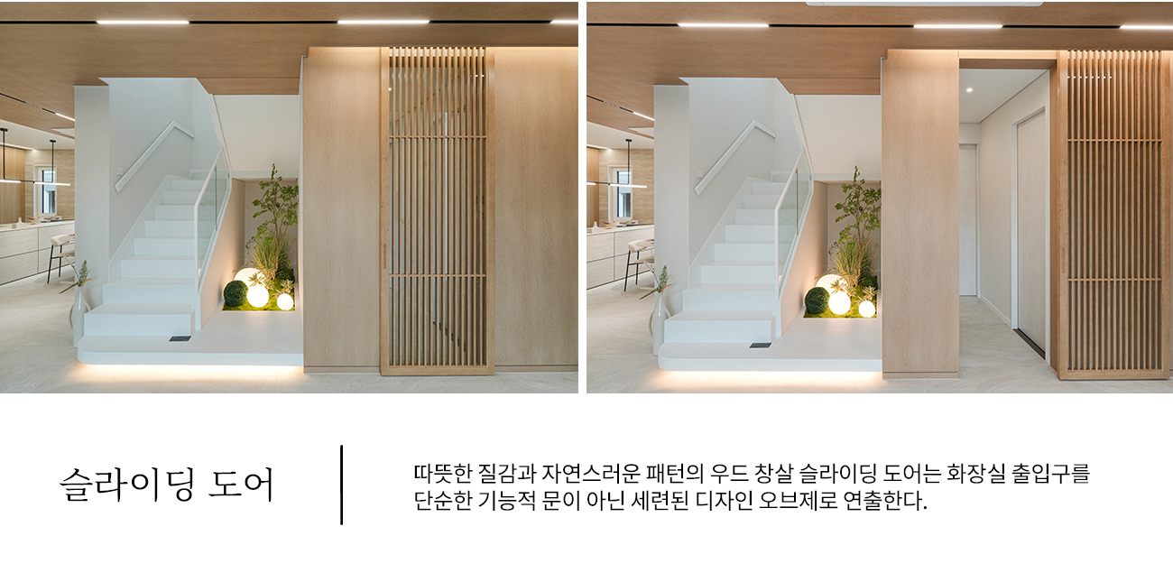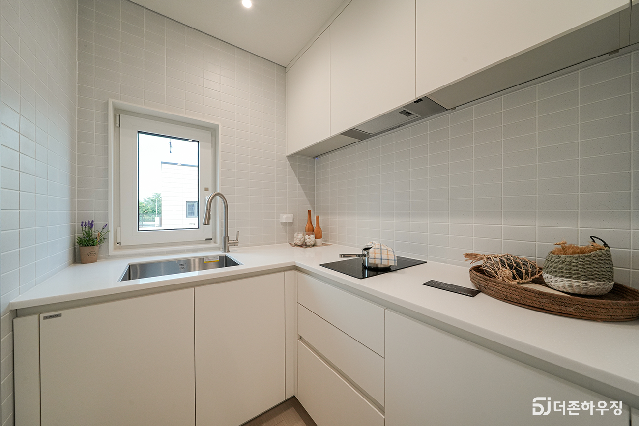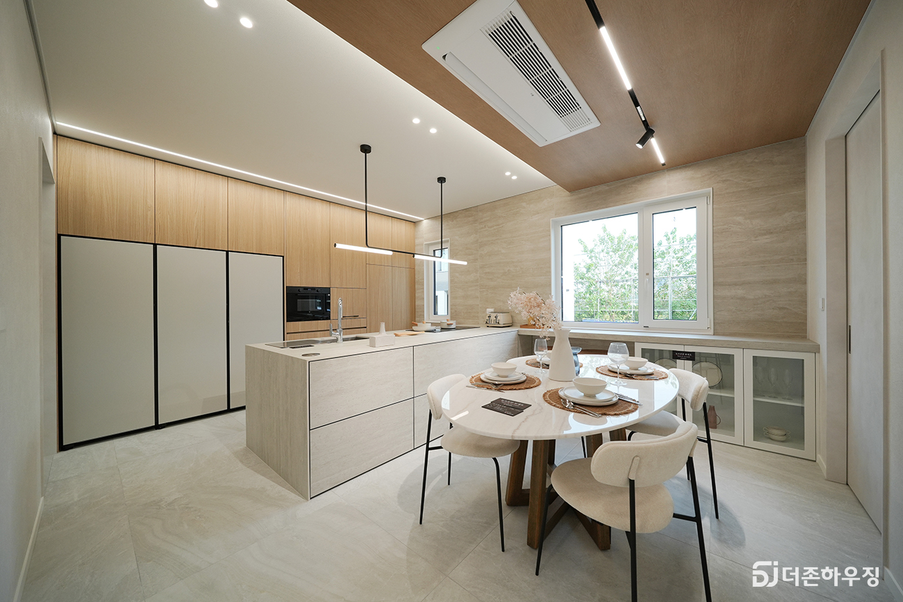 소거실과 가까워 간단한 다과나 음료 준비가 편리하며, 효율적인 동선과 절제된 수납 구조로 실용성을 높였다.